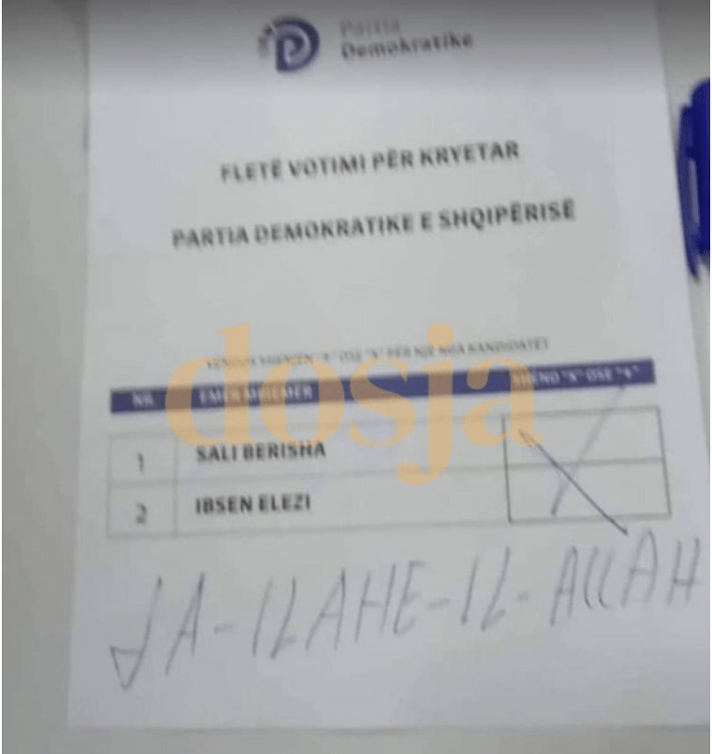 Por ai është mjaftuar duke i vendosur një kryq të madh mbi fletën e votimit teksa shkruan “La-Ilahe-Il-Allah”, që në shqip përkthehet “nuk ka Zot tjetër përveç Allahut”.