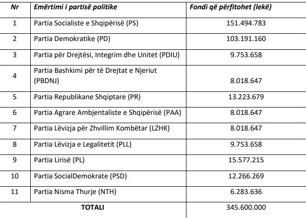 Këto janë fondet vjetore e bazohen tek rezultati i zgjedhjeve në 2021. Këtu nuk ka debat për PD. Fondi i nesërm do të kalojë në llogarinë bankare të PD që aktualisht administrohet nga Gazmend Bardhi. Fondi për fushatën zgjedhore ku ha diskutim PD prej bojkotit 2019, ndahet në fund të marsit.