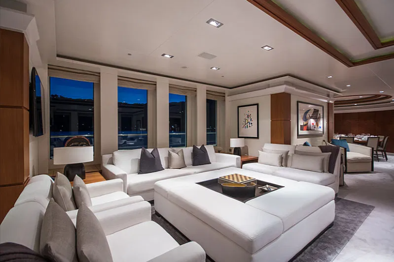 Jahti ‘Triple Seven’ mund të merret me qira me një tarife prej 460,573 paundë në javë. Jahti ofron një jakuzi në kuvertë, një palestër, një pishinë, jet ski dhe një numër të shumtë dhomash.