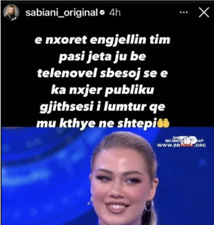 “E nxorët engjëllin tim pasi jeta iu bë telenovelë, nuk besoj se e ka nxjerr publiku. Gjithsesi i lumtur që më është kthyer në shtëpi”, u shpreh ai.