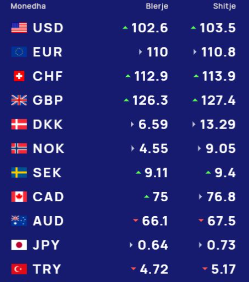 Ndërsa paundi britanik do të blihet me 126.3 lekë dhe do të shitet me 127.4 lekë.