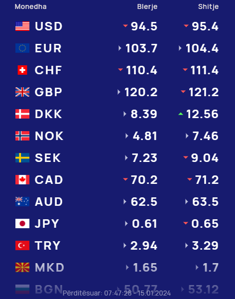 - Euro blihet me 103.7 lekë dhe shitet me 104.4 lekë,