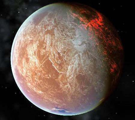 8. 55 Cancri e: një planet llavë. Kjo botë e llavës orbiton rreth një ylli që është i ngjashëm me Diellin. Sidoqoftë, sipërfaqja e planetit është e pabanueshme sepse është e mbuluar me llavë të shkrirë. Qielli në këtë botë shkëlqen kur llava sipërfaqësore reflekton në anën e errët të planetit. Vetëm njëra anë e planetit përballet me yllin, tjetra është plotësisht e errët. Ai është zbuluar në 2004.