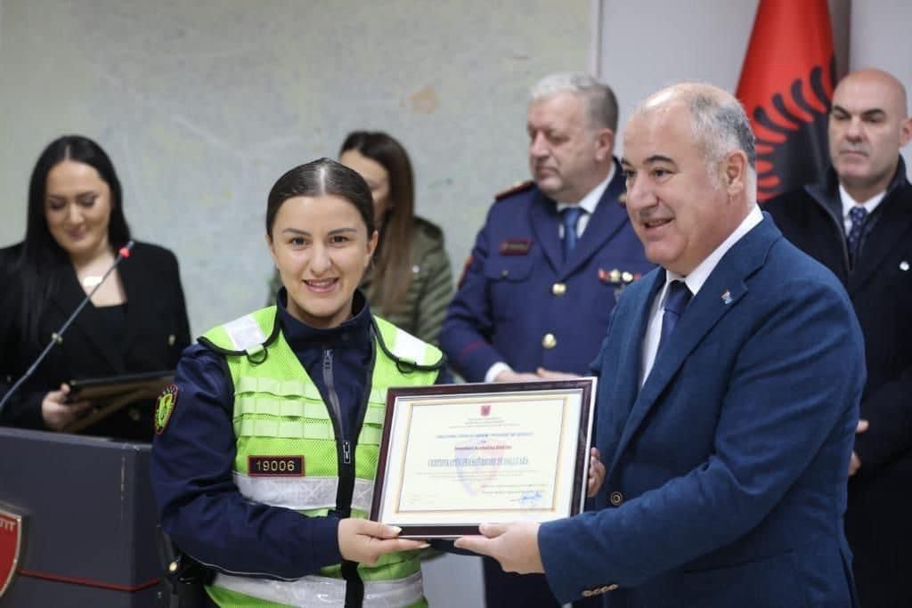 “Festa e 111 vjetorit të Policisë së Shtetit e gjen Komisariatin e Policisë Rrugore Tiranë më profesionale, më të bashkuar e bashkëpunuese brenda saj dhe me strukturat e tjera të Policisë së Shtetit dhe Policisë Bashkiake! Në këtë ditë feste punonjësja jonë Anxhelina Bregu u nderua me Çertifikatë për Shërbime të Dalluara si punonjësja e qarkullimit rrugor që ka konstatuar numrin më të madh të rasteve të korrupsionit aktiv. Të gjithë së bashku për një Shqipëri sa më të sigurt dhe të suksesshme! Gëzuar!”, njofton policia.