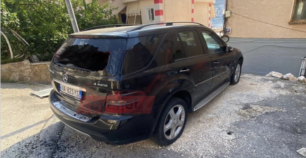 Xhamat e makinës tip Fuoristrade Mercedes-Benz ML me targe AA823YS janë thyer. Po ashtu dhe gomat i janë çarë. Siç Shihet dhe nga fotoja agresori ka bërë vizime me sprajt.