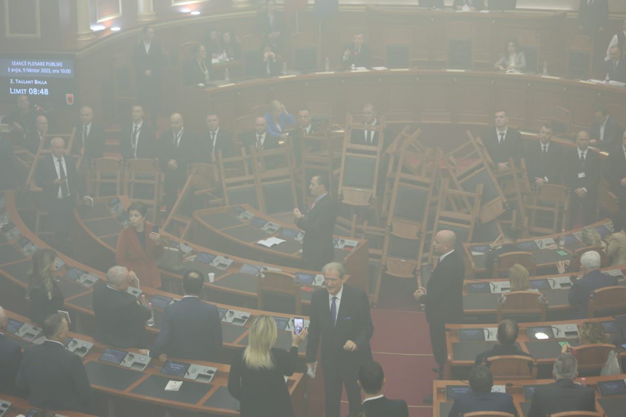 Vetëm 20 minuta ka zgjatur seanca e sotme plenare. Shkak u bë kaosi që u krijua nga opozita, e cila që në nisje përmbysi karriget e më pas hodhi tymuese. Deputeti Saimir Korreshi është përjashtuar nga seanca pas ndezjes së tymueseve.