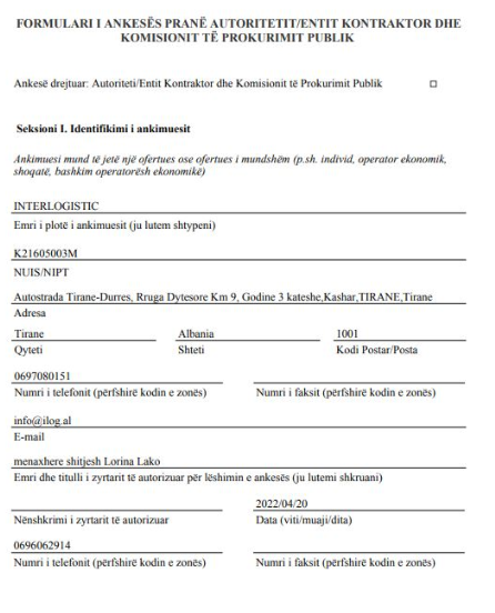 Kjo ka bërë që Presidenca mos të kryejë procedura të rregullta tenderi. Kjo është faktuar nëpërmjet një ankese e mbërritur në Komisionin e Prokurimeve Publike në lidhje me procedurën. Ankesa është bërë nga kompania që ka marrë pjesë në garë, “INTERLOGISTIC”, ku dhe ka konstatuar pasaktësitë.