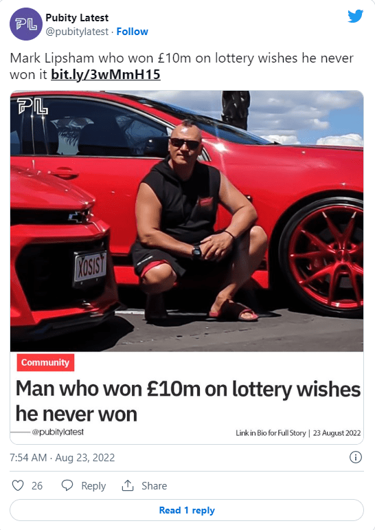Paraja nuk mund ta blejë lumturinë por mund ta bëjë jetën më të lehtë. Megjithatë, një burrë, që fitoi lotarinë shprehet se do të ishte më mirë të mos kishte marrë asgjë. Mark Lipsham, një shofer kamioni 53-vjeçar nga Auckland, Zelanda e Re, pati fat një ditë në 2017 kur fitoi 12 milionë euro.