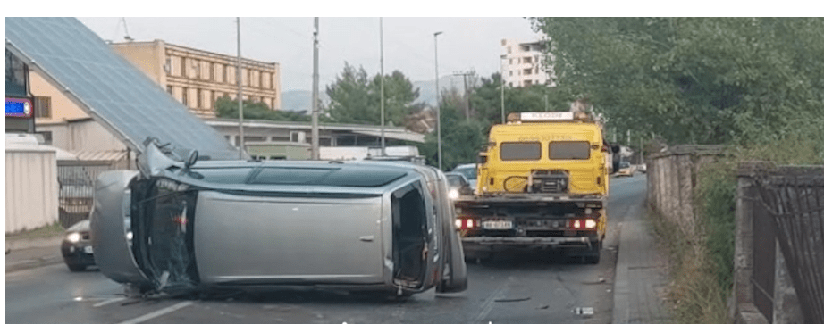 U bë me dijes e një makinë është përplasur me murin anësor të rrugës dhe është përmbysur.