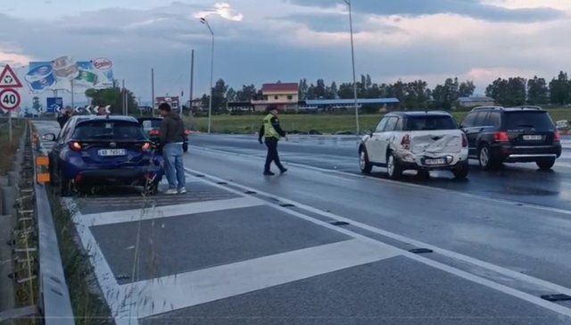 Dyshohet se një prej makinave ka përplasur mjetin që ishte para tij në pamundësi të frenonte për shkak të lagështirës, por edhe ky u përplas nga pas nga një tjetër mjet.