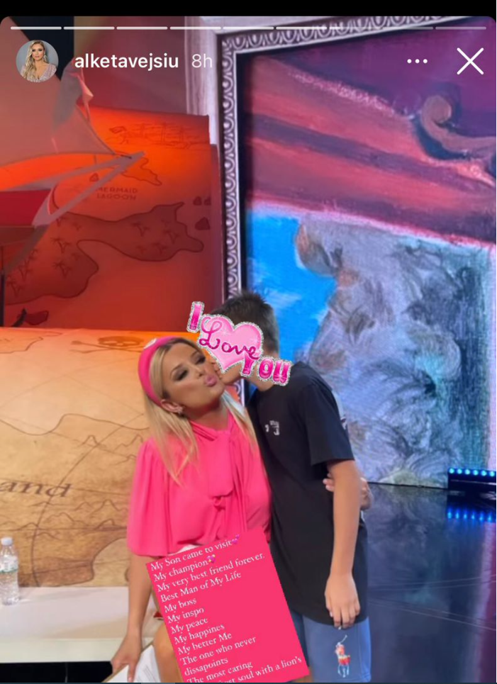 Por këtë herë, Alketa ka vendosur të ndajë një foto me djalin e saj, i cili e ka shoqëruar atë në puntatën e fundit të emisionit “Në kurthin e Piter Pan”.