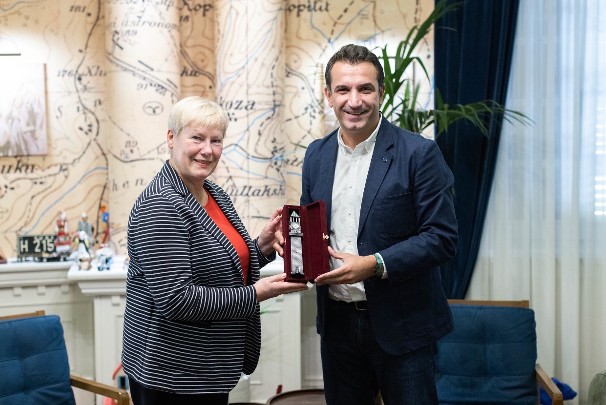 Kryebashkiaku Veliaj i dhuroi ambasadores Hohmann, ‘Kullën e Sahatit’ të Tiranës.