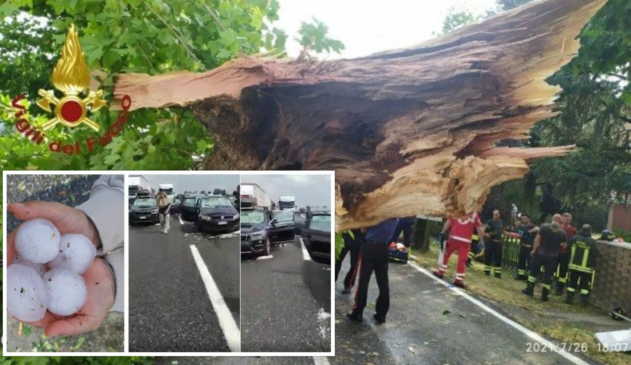 Ndërkohë që në autostradën A1 që lidh Parmën me Piacenzën janë bërë virale imazhet e rrëbeshit dhe stuhisë aq e fuqishme që në disa raste ka thyer edhe xhamat e makinave.