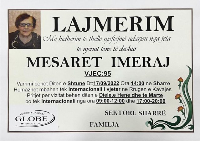 Ndërron jetë në moshën 95 vjeçare, Mesarete Imeraj ( Karagjozi).