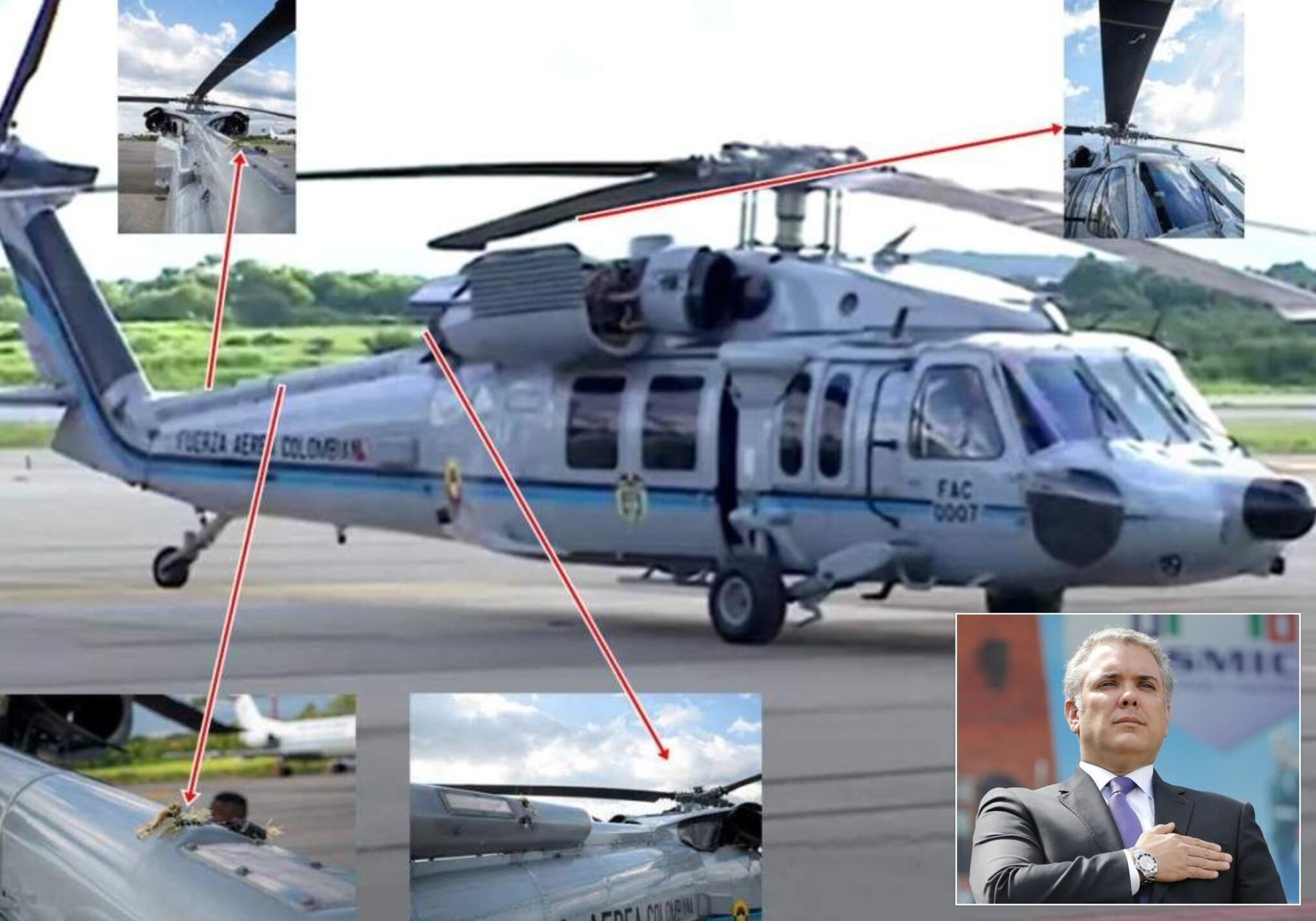 Disa persona ende të paidentifikuar hapën zjarr ndaj helikopterit që po transportonte Presidentin kolumbian. Për shkak të kësaj, mjeti kishte vrima të mëdha të plumbave që e kishin goditur në shumë vende. Për fat të mirë, piloti bëri një ulje të sigurt dhe shpëtoi jetën e të gjithë pasagjerëve. Presidenti kolumbian Ivan Duque tha helikopteri me të cilën po udhëtonte ai bashkë me disa ministra të qeverisë së tij, u qëllua në jug të Catatumbo, në kufi me Venezuelën