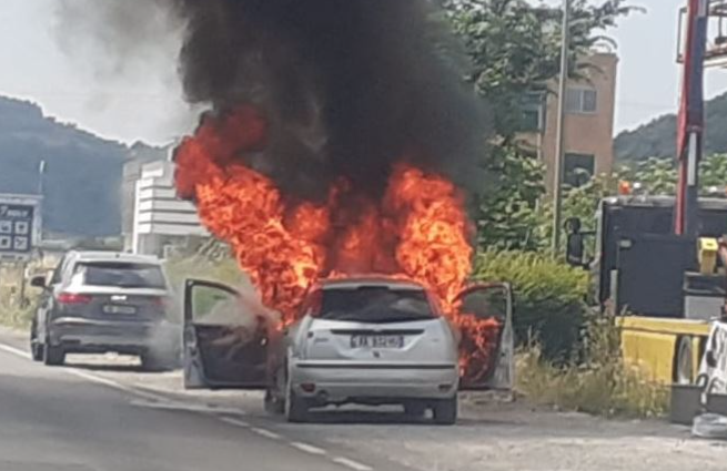 Përfshihet nga flakët automjeti në autostradën Tiranë-Durrës (Video)