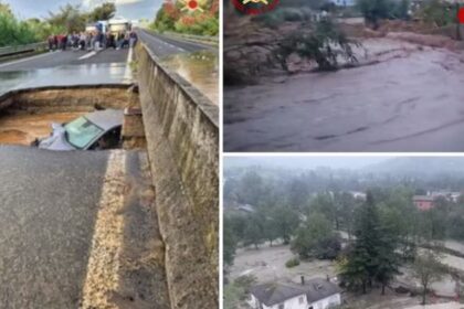 Moti i keq në Itali, makina gëlltitet në sipërfaqe rruge