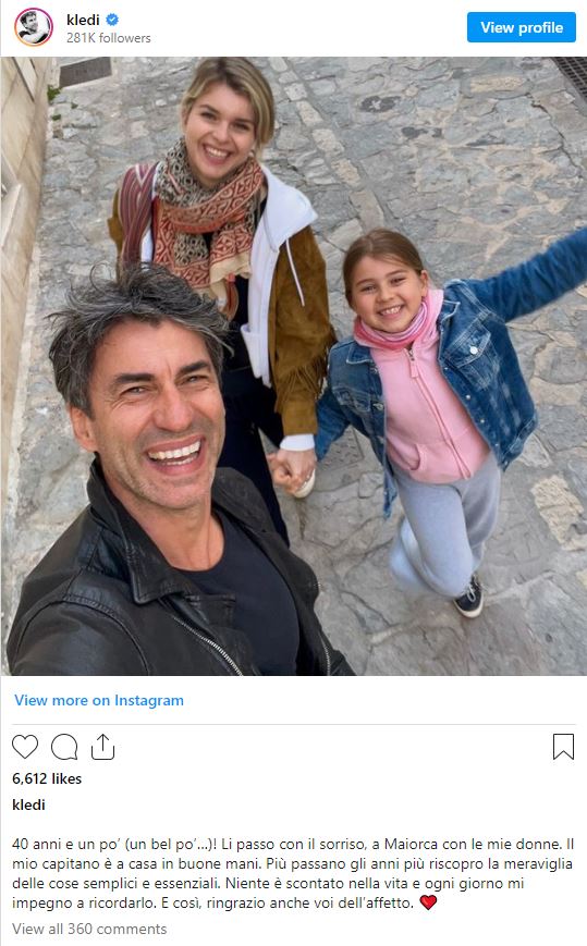 “40 vjet e pak (shumë pak…)! I kaloj me buzëqeshje, në Mallorca me vajzat e mia. Kapiteni im është në shtëpi në duar të sigurta. Sa më shumë kalojnë vitet, aq më shumë rizbuloj mrekullinë e gjërave të thjeshta dhe thelbësore. Asgjë nuk merret si e mirëqenë në jetë dhe përpiqem ta kujtoj çdo ditë. Dhe kështu, edhe unë ju falënderoj për dashurinë”– shkruan Kledi.