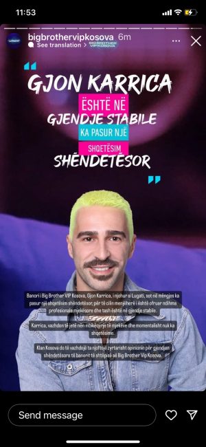 Faqja zyrtare e “Big Brother Vip Kosova” njoftoi ndjekësit e tij me anë të një postimi në rrjete sociale pasi Gjon Karrica la shtëpinë.