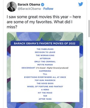 Mesa duket të publikojë listën e filmave të tij të preferuar në fund të çdo viti është një traditë e ndjekur nga ish-presidenti amerikan Barack Obama. Edhe një vit më parë ai ka publikuar në Twitter një listë të filmave të preferuar gjatë vitit 2021.