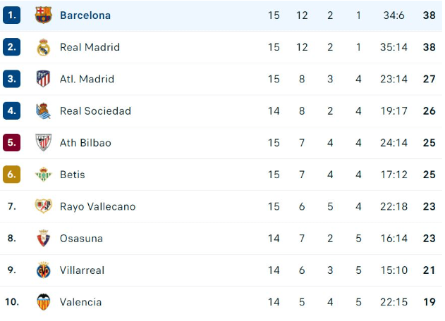 Barcelona rriti presionin, por portieri Alvaro Fernandez kreu pritje fantastike ndaj Christensen dhe Lewandowskit, duke i dhuruar një pikë të artë ekipit të tij. Pas javës së 15-të, Barcelona qëndron në krye të La Liga-s me 38 pikë, aq pikë sa edhe Real Madrid por katalanasit kanë golavarazh më të mirë.