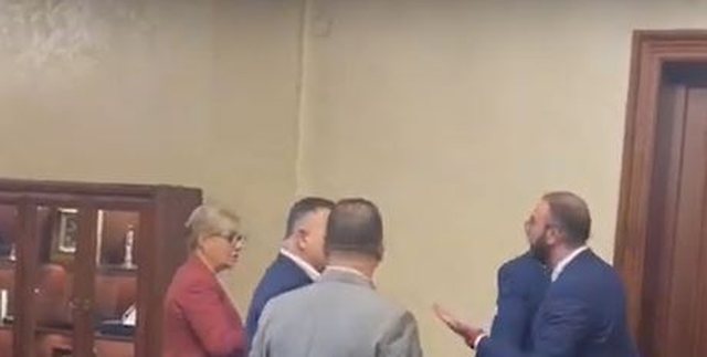 Bardhi dhe Nikolla u përballën në korridorin e Kryesisë së Kuvendit, aty ku po qëndronin deputetët e PD pasi nuk u lejoheshin që të hynin në sallë.