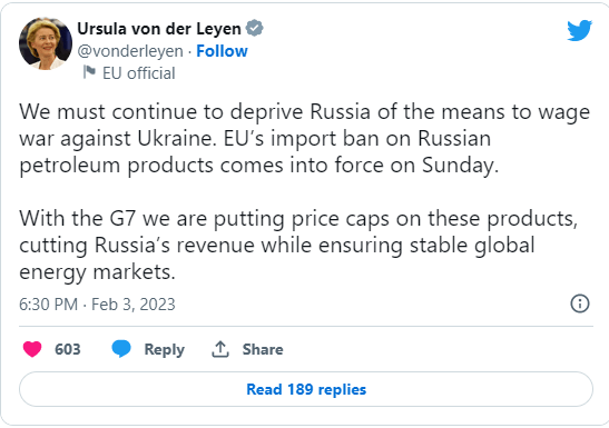 Kufiri i çmimit hyn në fuqi të dielën, ashtu si edhe ndalimi i BE-së për importet e produkteve ruse të naftës.