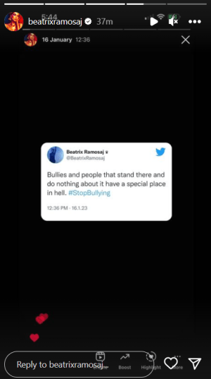 Pas kësaj Trixa ka postuar edhe një story ku shkruante: