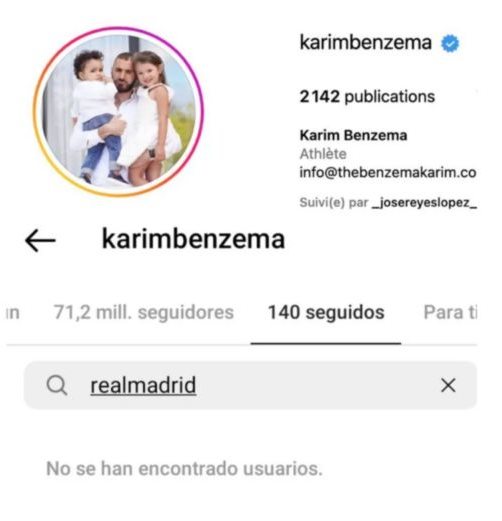 Francezi ndaloi së ndjekuri llogarinë zyrtare të Real Madridit në Instagram (ndërsa ende i ndjek në Twitter).Benzema ndaloi së ndjekuri llogarinë zyrtare të Real Madridit në Instagram