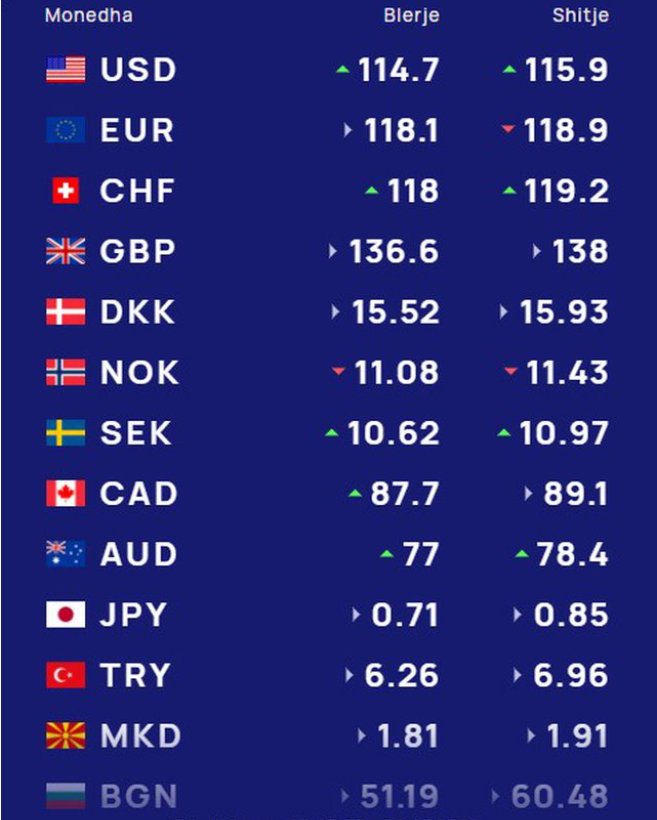 - Dollari amerikan sot blihet 114.7 Lekë dhe shitet 115.9 Lekë;