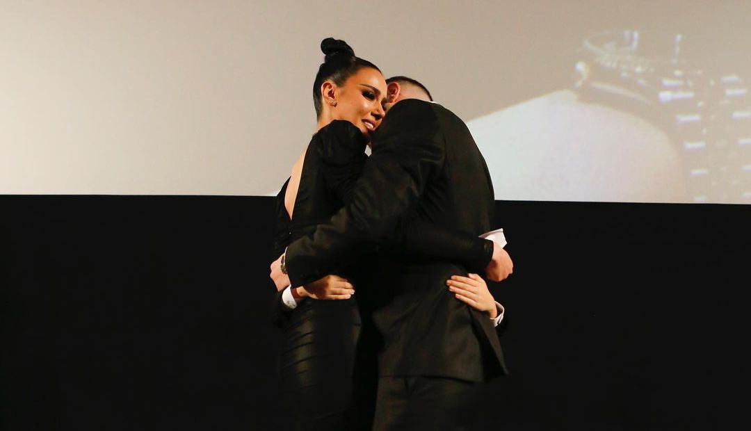 Pas këtij momenti, të tre shihen të përlotur ndërsa përqafojnë njëri-tjetrin. Mbetet për tu parë, nëse kjo është pjesë e një skenari apo e vërtetë. Nuk do ishte habi nëse çifti do të bëheshin prindër, ndërsa janë në një marrëdhënie prej vitesh tashmë. Një ditë më parë aktori i propozoi moderatores në nisje të premierës së filmit të tyre të parë së bashku “5 Herë Jo”.