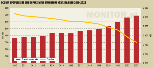 Edhe pse buxheti i vitit 2023 do të grumbullojë 29% të ardhura në raport me PBB-në, ose 6 pikë përqindje më pak se mesatarja rajonale, rritja në vlerë neto, në një popullsi në tkurrje, i lë më shumë shteg politikës të fokusohet në përmirësimin e cilësisë së jetës në popullsinë e mbetur, 30% e së cilës jeton në varfëri.