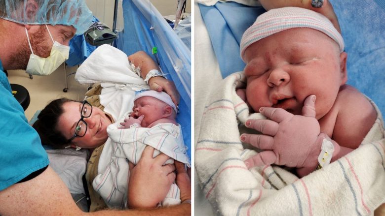Lindi foshnjen mbi 6 kg, nëna e vesh me rroba për fëmijë 1 vjeç