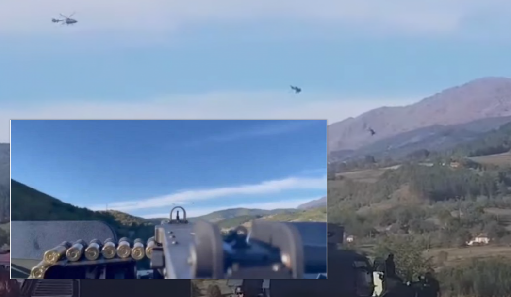 VIDEO/ Nuk është si duket… Serbia patrullon me helikopterë sulmi kufirin, autoblinda e Policisë së Kosovës i shënjestron me 12.7-sh