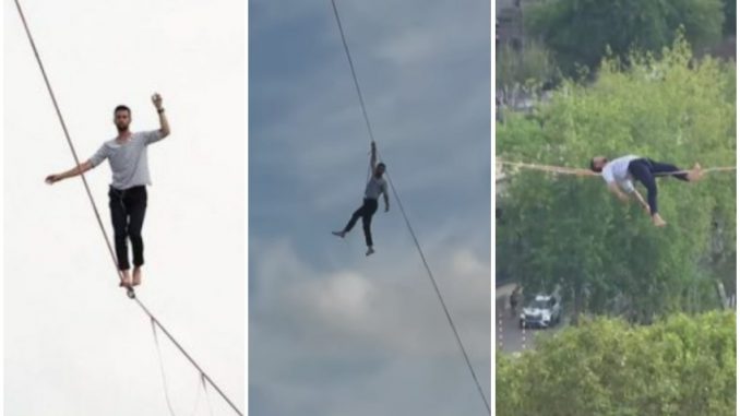 VIDEO+FOTO/ Spektakël te Kulla Eiffel, akrobati ecën gjysmë ore mbi litar në një lartësi 70 metra nga toka