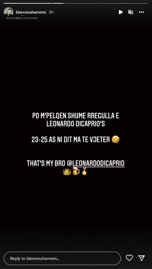 “Po më pëlqen shumë rregulli i Leonardo DiCaprios. 23-25, asnjë ditë më të vjetër. Ky është vëllai im”- shkruan Blero, teksa Afrona pak kohë më parë festoi 30-vjetorin e lindjes. Ndërkohë, pak ditë pas këtij statusi, Afrona ka bërë një postim në profilin e saj në Instagram që duket si një ‘thumb’ ndaj ish-partnerit të saj.