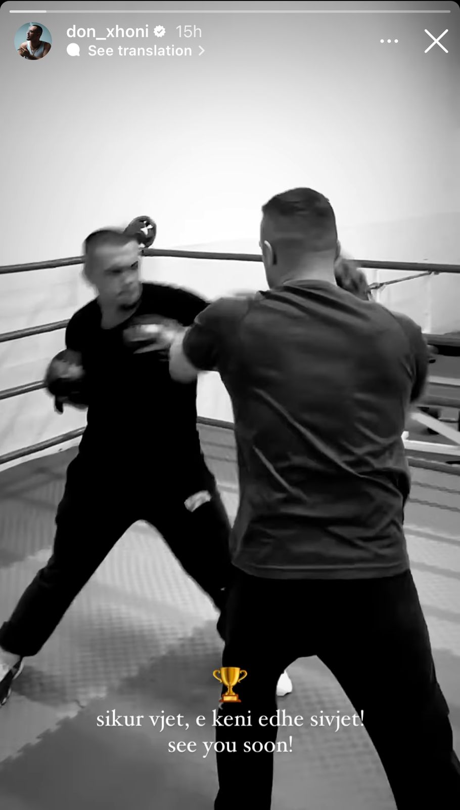 etëm disa orë më parë me anë të një Instastory teksa ka ndarë me ndjekësit një video duke ushtruar boks, një nga pasionet e tij më të mëdha përpos muzikës, krahas ka shkruar: