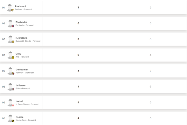 Qendërsulmuesi i Ballkanit kryeson listën e golashënuesve në këto kualifikuese, me plot 7 gola të shënuar në 5 ndeshje. Rrahmani kryeson i vetëm, ndërsa po udhëheq Ballkanin drejt grupeve të Conference League.