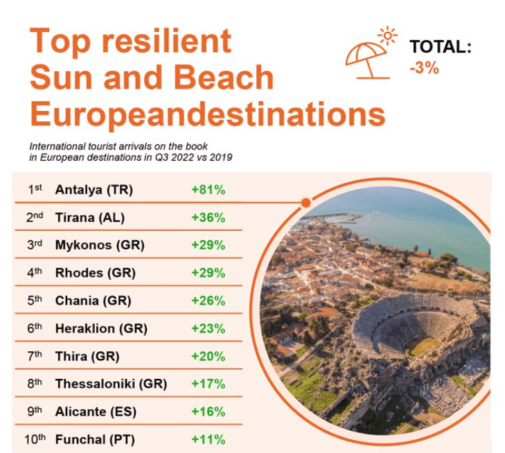 Sipas Forward Keys preferenca aktuale për pushimet verore është Antalia, me një rritje prej 81%, Tirana 36%, Mikonos, 29%, ndërsa në listën urbane katër destinacionet kryesore janë: Napoli, Stambolli, Athina dhe Lisbona.