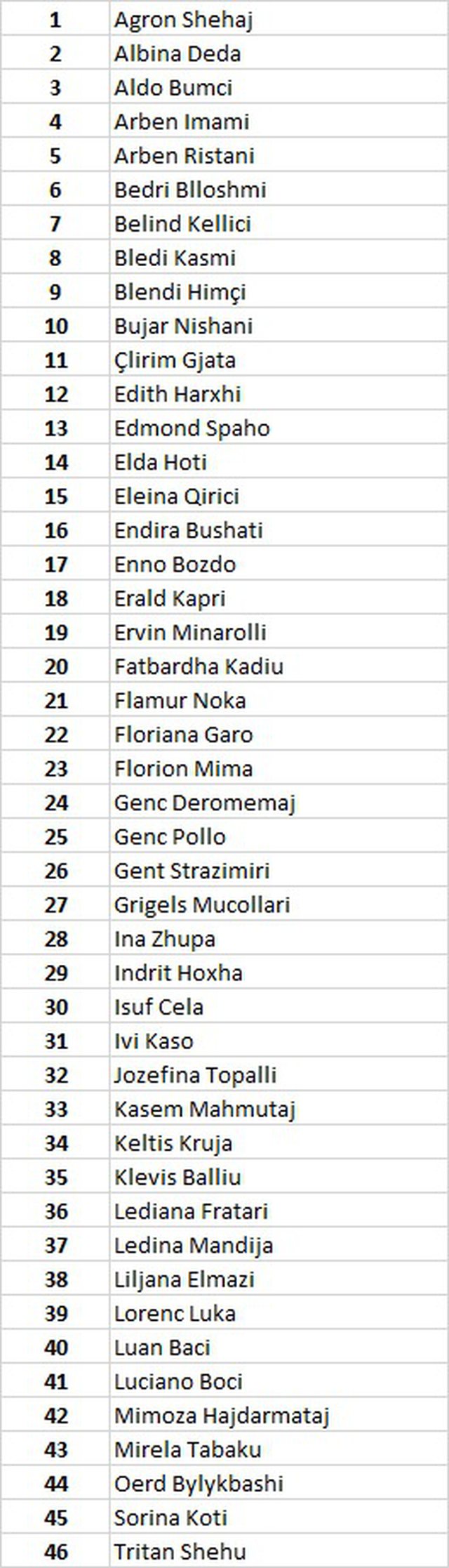 Ndërkohë pjesë e listës ishte edhe Ina Zhupa dhe Kasëm Mahmutaj.