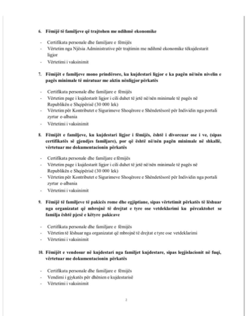 Aplikimi do të kryhet vetëm për fëmijët të cilët nuk kanë frekuentuar më parë çerdhet publike të Bashkisë Tiranë.