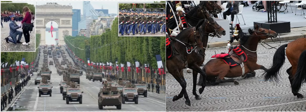 Por paradës së sotme nuk i kanë munguar as incidentet e vogla, si dhe momentet romantike. Një prej oficerëve të rinj të xhandarmerisë franceze, ka gjetur pikërisht momentin para fillimit të paradës për t’i propozuar për martesë duke u gjunjëzuar në “Champs-Elysees”, para të dashurës së tij, një fotoreportere që kishte ardhur aty për të shkrepur foto nga parada.
