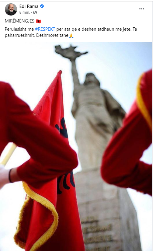 Me anë të një postim në rrjetet sociale, Rama ka shprehur respektin për të gjithë ata që ranë në luftë për atdheun.