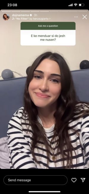 Së fundmi, moderatorja ka realizuar një intervistë virtuale me ndjekësit e saj, ku këto të fundit këtë herë duket se kanë shkuar shumë larg. Ndjekësit janë kuriozë si do të jetë Dojna si vjehrrë, ndonëse djali i saj është vetëm disa muajsh. Siç pritej, Mema u shpreh se nuses nuk do t’i mungojë ngrohtësia nga ana e saj.