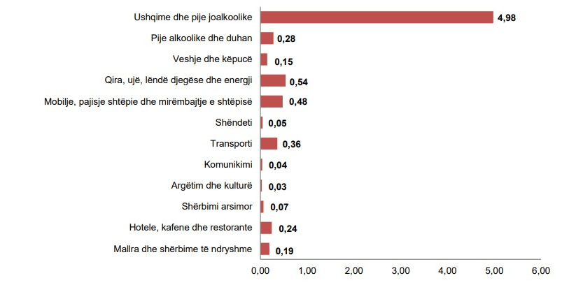 Çmimet e grupit “Hotele, kafene dhe restorante” kanë kontribuar me +0,24 pikë përqindje.