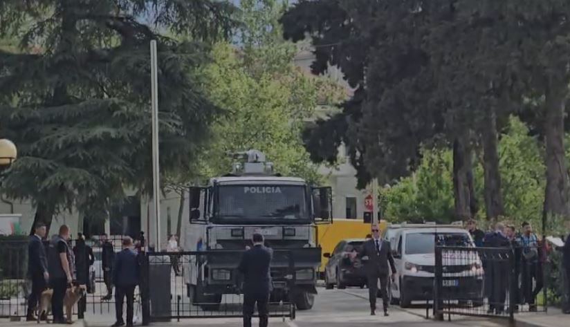Para Kuvendit janë marrë masa ku autobotë dhe qen policie janë vendosur në hyrje, në rast se protestuesit do tentojnë të hyjnë në Parlament.