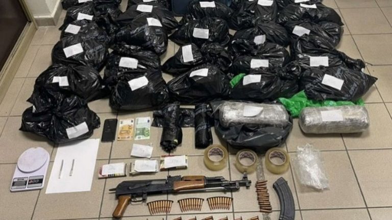 Lënda narkotike u gjet në shtëpinë e tij në Toumba, ku ndër të tjera u sekuestrua një kallashnikov dhe një karikator me 14 plumba.