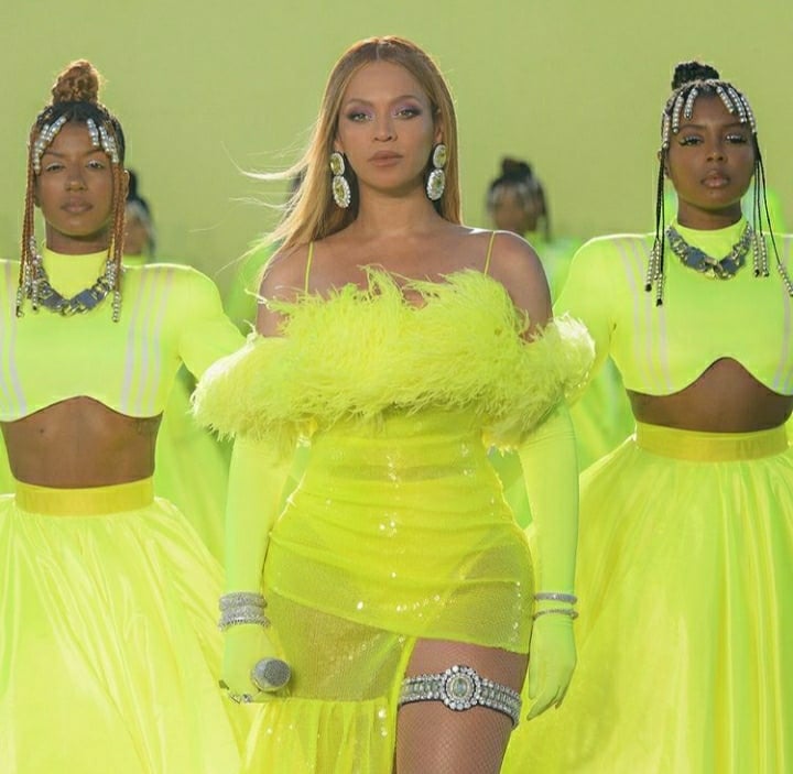 Beyonce u shfaq në spektaklin e Oscars duke performuar me një veshje në po të njëjtën ngjyrë dhe u duk që shkëlqeu me atë veshje.