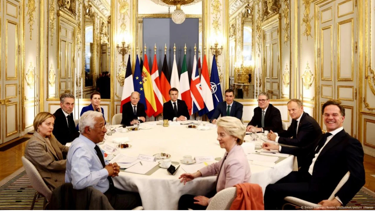 Rreth tryezës ishin krerët e shteteve dhe qeverive të anëtarëve kryesorë të BE, Presidentja e Komisionit Ursula von der Leyen, Presidenti i Këshillit Evropian António Costa dhe Sekretari i Përgjithshëm i NATO-s Mark Rutte. Pas takimit nuk kanë munguar mesazhet e unitetit, shoqëruar me një foto rreth tryezës së rrumbullakët në Paris.