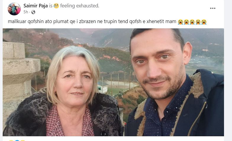 Djali i viktimës ka prekur me një mesazh kushtuar nënës së tij në rrjetet sociale, ndërsa ka ndarë dhe një foto ku krahas saj shkruan: “Mallkuar qofshin ato plumbat qe i zbrazen ne trupin tend qofsh e xhenetit mam”.